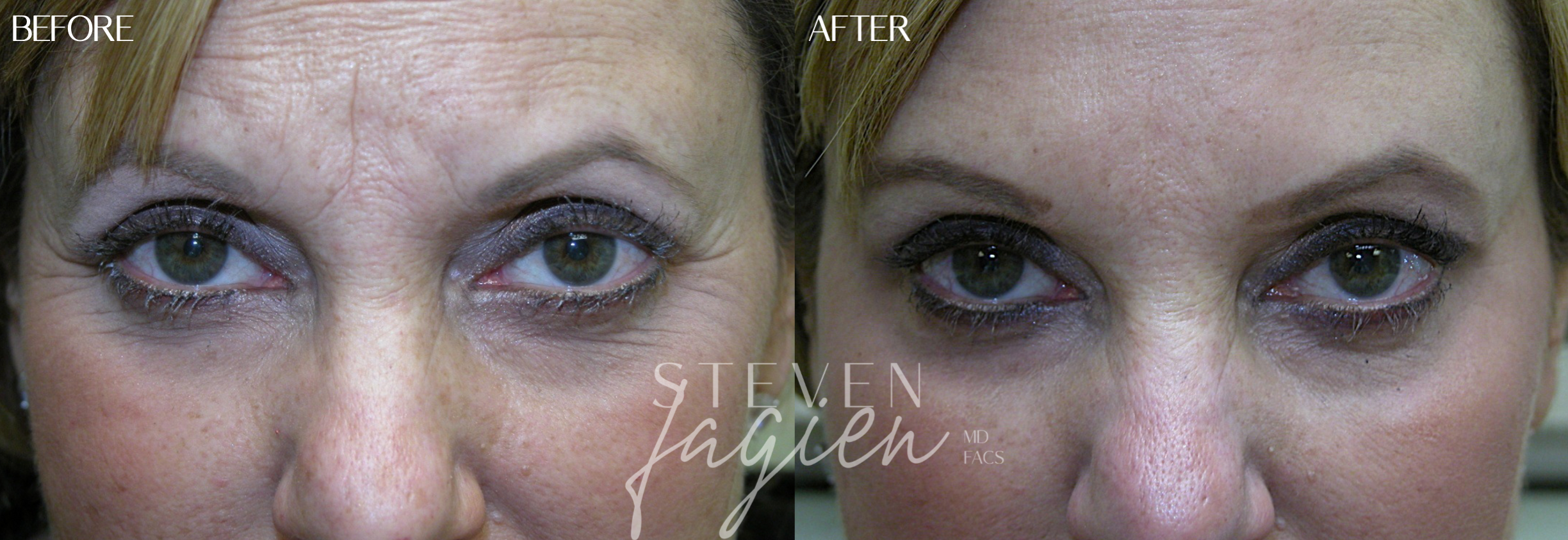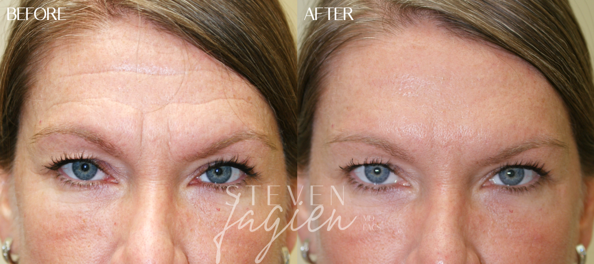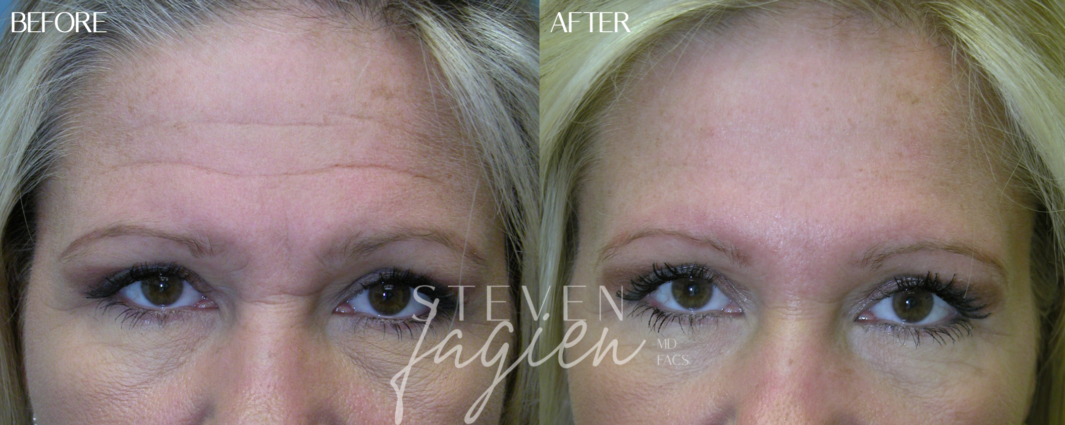 Case 3: Dr. Fagien pioneered the use of fine-line fillers to treat deep forehead lines. Unlike with neuromodulators alone, this treatment does not adversely affect the position of the eyebrows and can last up to 2 years.